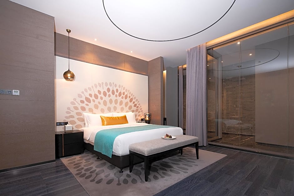 The only Glam suite is on the 2nd floor with the view of the century-old chimney, the city’s most striking industrial legacy. Our lavish 246 ft² Glam Suite features a King-sized bed in a separate bedroom, spacious living, and outdoor terrace. Our Cachet Tailor made mattresses ensure restful sleep, and luxury bathroom amenities bring out your youthful glow. It also features with CINO coffee machine with Starbucks coffee capsule, well-stocked mini bar and Yunnan Tea such as Pu'er Tea.